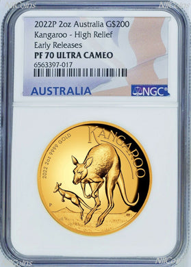 2022 Australian High Relief Proof Kangaroo $200 NGC PF70 .9999 2oz GOLD Coin ER