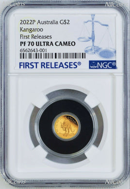 2022 Australia Mini Roo Kangaroo PROOF 9999 GOLD 0.5g $2 NGC PF70 Coin FR BlueLb