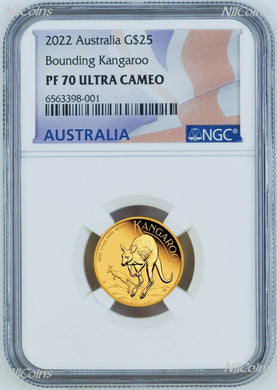 2022 Australia Bounding Kangaroo PROOF 1/4oz .9999 GOLD $25 NGC PF70 Coin