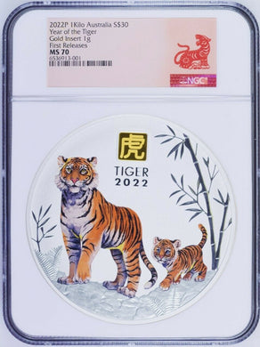 2022 Lunar Year of the TIGER 1 Kilo Silver $30 Coin NGC MS70 w/ Gold Privy Mark