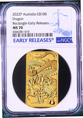 2022 Dragon 1oz .9999 GOLD Rectangular $1 Dollar Bar COIN NGC MS 70 ER