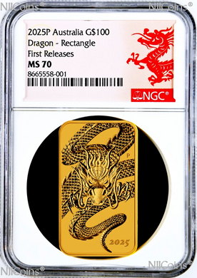 2025 Dragon 1oz .9999 GOLD Rectangular $100 Dollar Bar COIN NGC MS 70 FR Lunar
