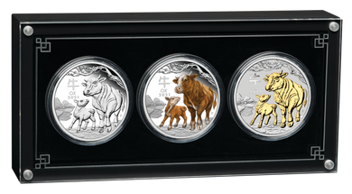 2021 LUNAR SERIES III YEAR OF THE OX 1oz SILVER TRIO $1 3-coin Set 3oz-total