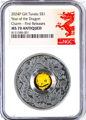 2024 LUNAR Year of Dragon 1oz $1 Silver Rotating Charm Antiqued Coin NGC MS70 FR