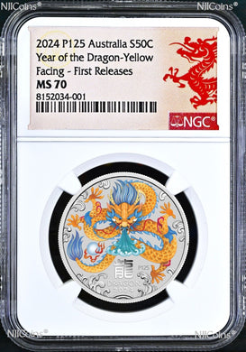 2024 Silver Lunar Year of the Dragon NGC MS70 1/2oz Coin Yellow Facing RG Issue