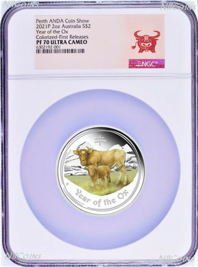 2021 ANDA EXPO PROOF Colored Silver Lunar Year of the OX NGC PF70 2oz $2 Coin FR