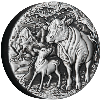 2021 Year of the Ox 2oz .9999 SILVER $2 First Lunar ANTIQUED COIN