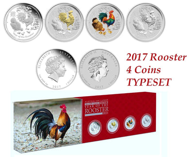 Australia 2017 Year of Rooster Lunar 1 Oz 4 Coin Type Set $1 Silver Dollars