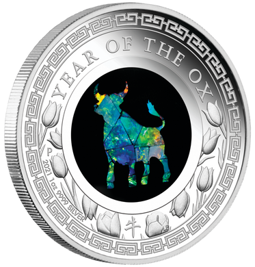 2021 Australia Opal Series Lunar Year of the OX 1oz Silver Proof $1 Coin