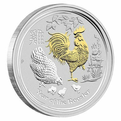 2017 Australia Lunar Year of the Rooster GILDED 1oz SIlver $1 Coin w/ OGP Gilt