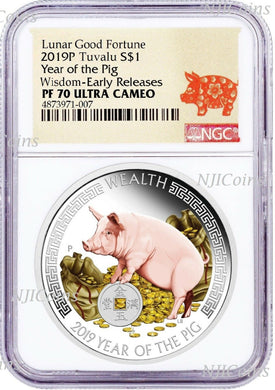 2019 P Tuvalu 1 Oz Silver Good Fortune Lunar Year PIG Wealth $1 Coin NGC PF70 ER