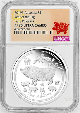 2019 Australia PROOF Silver Lunar Year of the PIG NGC PF70 1oz $1 Coin ER w/ OGP