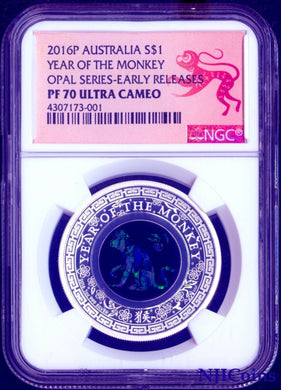 2016 Australia OPAL LUNAR Year of the MONKEY 1 oz Silver Proof Coin NGC PF70 ER