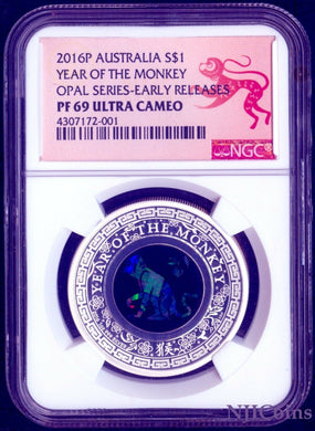 2016 Australia OPAL LUNAR Year of the MONKEY 1 oz Silver Proof Coin NGC PF69 ER