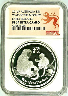 2016 P Australia PROOF Silver Lunar Year of the Monkey NGC PF 69 1 oz Coin ER
