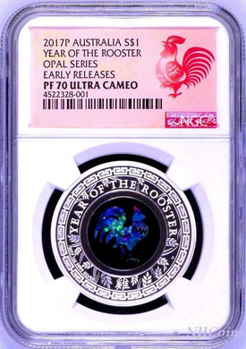 2017 Australia OPAL LUNAR Year of the ROOSTER 1oz Silver Proof Coin NGC PF70 ER