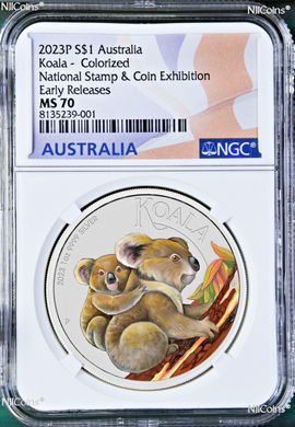 2023 Koala 1oz Colored Silver Perth Coin Stamp & Coin Exhibition Special MS70 ER