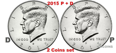 2015 Kennedy Half Dollars 2 coins set P + D Clad President 50¢ coin US Mint