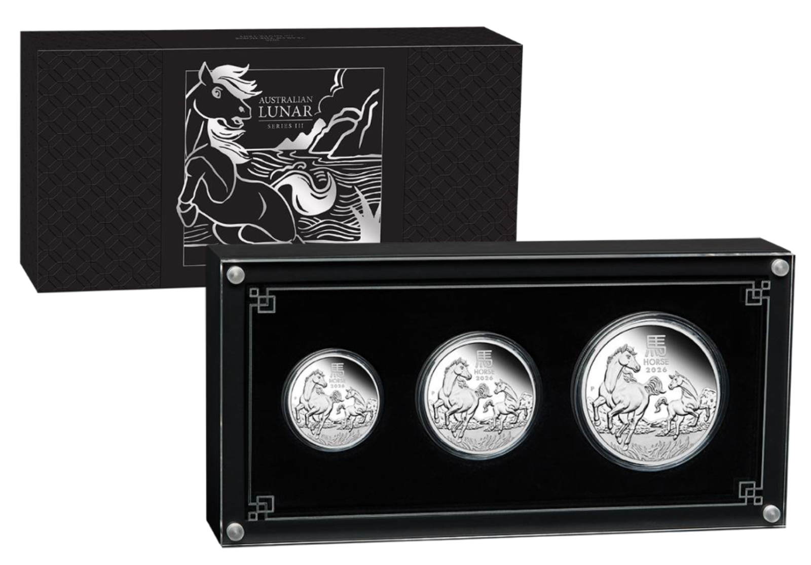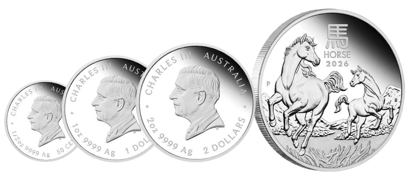 2026 Australian Lunar Year of the Horse Silver Proof 3-Coin Set ($2 2 oz, $1 1 oz & 50c 1/2 oz, totally 3.5 oz)