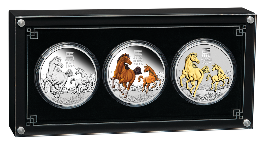 The Perth Mint will release no more than 1,500 of 2026 Australian Lunar Year of the Horse 1oz SILVER TRIO $1 3-coin Set.